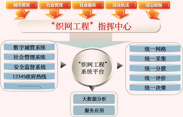 據(jù)了解,所謂“織網(wǎng)工程”,是充分運(yùn)用網(wǎng)格理念和現(xiàn)代信息技術(shù),以責(zé)任制為依托,合理劃分網(wǎng)格管理單元,將城市管理、社會(huì)管理、社會(huì)服務(wù)等內(nèi)容進(jìn)行整合,以城市管理事、部件及社會(huì)各類(lèi)人的管理為重點(diǎn),綜合考慮“地、物、事、組織”等因素,搭建網(wǎng)格化管理系統(tǒng)平臺(tái),并以此為基礎(chǔ)開(kāi)展公共服務(wù)與便民服務(wù)等一系列社會(huì)服務(wù)。“織網(wǎng)工程”實(shí)施時(shí)間不長(zhǎng),但它在破除“信息孤島”、創(chuàng)新社會(huì)管理、改善公共服務(wù)、重塑政府流程等方面的頂層設(shè)計(jì)和試點(diǎn),受到國(guó)內(nèi)各級(jí)政府的廣泛關(guān)注。