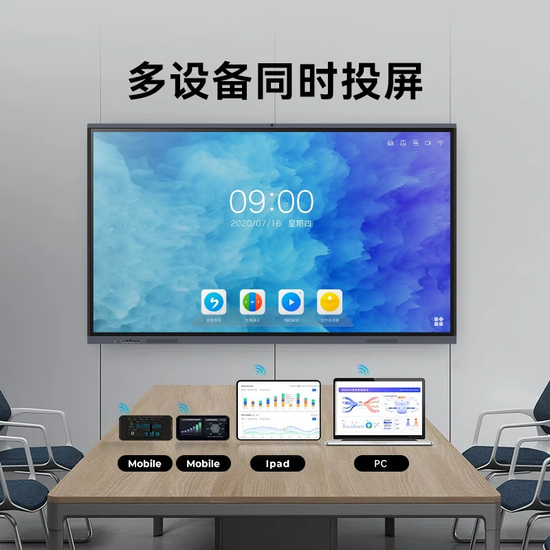 在現(xiàn)代辦公環(huán)境中,多設(shè)備協(xié)作已成為常態(tài)。視宇智能科技會議平板支持無線投屏功能,兼容手機、平板、電腦等多種設(shè)備,且支持主流操作系統(tǒng),如 iOS、Windows、Android 等。用戶只需通過簡單的操作,即可將自己設(shè)備上的內(nèi)容快速投屏到會議平板上,無需繁瑣的線纜連接,徹底擺脫了線材的束縛。不僅如此,會議平板最多可支持 8 臺設(shè)備同時連接,并能實現(xiàn) 4 分屏展示,方便團隊成員在會議中分別展示不同的內(nèi)容,進行對比分析和討論。設(shè)備還支持反向控制功能,參會者在會議平板上即可對投屏設(shè)備進行操作,如翻頁、演示、批注等,無需離開座位,大大提高了會議效率,讓多方協(xié)作更加流暢自然。